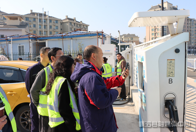 在菜园充电站,中国石化嵊泗石油支公司新能源岗工作人员详细介绍舟山石油新能源业务布局,从充电桩建设规划到实际运营服务,全方位展示企业在新能源领域的探索与实践。详实的讲解让嘉宾们对新能源应用有了更直观、立体的认知,感受到传统能源企业向绿色转型的强劲动力。