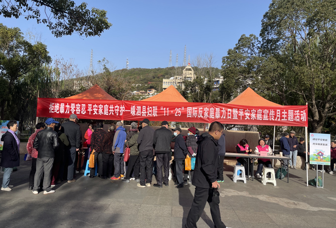 为深入普及反家庭暴力法律知识,提升广大群众的法律素养和维权能力,营造和谐稳定的家庭与社会环境,县妇联于11月25日在岛沁公园精心组织了一场主题鲜明、形式多样的“拒绝暴力零容忍·平安家庭共守护”普法宣传活动。