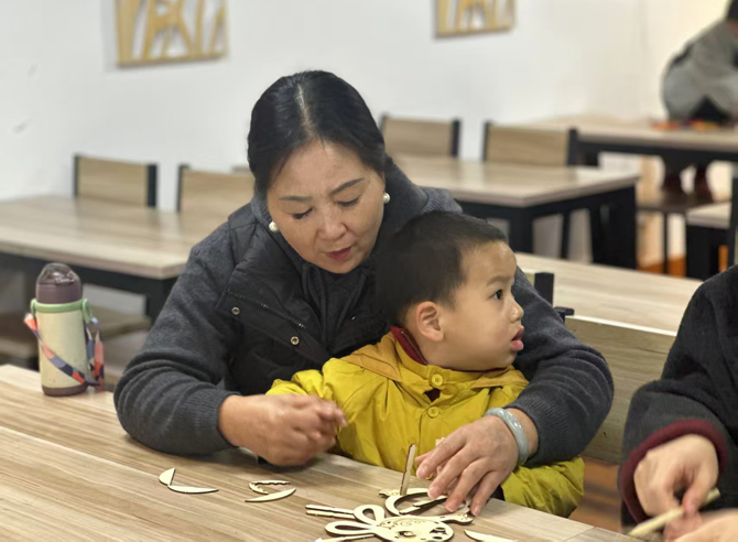 活动现场,资深育儿指导师开展“幼儿敏感期解读”专题讲座。聚焦祖辈家长关注的幼儿行为问题,围绕语言、空间、秩序等9大核心敏感期,结合真实场景解析幼儿行为背后的发展需求,传授科学引导方法。精准对接隔代教养需求,破解带娃困惑,获家长一致好评。结合“大雪”节气特色设置了亲子手作环节,祖辈协助孩子们绘风筝、做灯笼、剪彩纸、定造型、绘图案,祖孙协作协作既锻炼了幼儿动手能力,更拉近距离、增进情感。充满创意的手工作品,既承载传统民俗韵味,更成为隔代温情的美好见证。