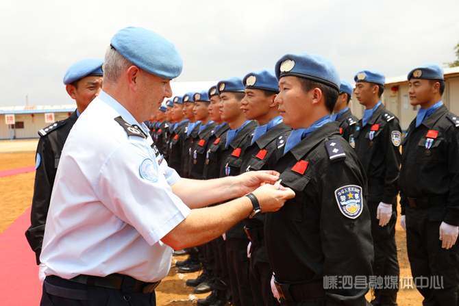 2016年,潘涛作为中国第四支赴利比里亚维和警察防暴队小队长,踏上战乱未息、疾病肆虐的西非大地,他和队员们面对的是严峻的安全形势和艰苦的生活条件。最令他难忘的,是执行利比里亚总统的警卫任务。“总统府毁于战火,总统在外交部办公。我们小队负责为期一个月的要人警卫,让我感到非常光荣。”潘涛回忆,“当时也进外交部参观过,和各级部长都有过交流,也算是参加一次重要的外事活动吧,增加了见闻。”维和期间,潘涛带领小队圆满完成了外交驻地安保、要人警卫、武装巡逻、应急处突等一系列高风险勤务,展现了过硬的中国警察素质和优良作风,被联合国授予象征和平与荣誉的“和平勋章”。
