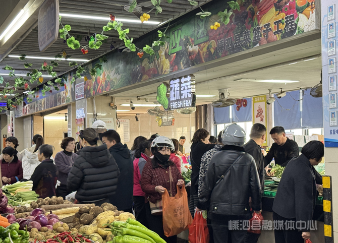 正在挑选芹菜的市民王阿姨一边往购物袋里装菜,一边笑着对记者说:“眼看元旦就到了,在外地上班的孩子们都要回来团圆,我得多备点新鲜菜。你看这儿的菜多全乎,价格也跟平时差不多,买着放心又省心。想着孩子们爱吃炖排骨、炒时蔬,我先挑点芹菜、白菜,再买点土豆、山药,多备点能吃好几天,不用总往外跑。”另一位正在称重的张先生也表示:“听说要降温大风,本来还担心菜价涨、买不到新鲜菜,过来一看完全没问题。元旦全家要聚餐,得多备点荤素菜,这儿的菜看着就新鲜,种类也多,一次就能买齐,挺方便的。”