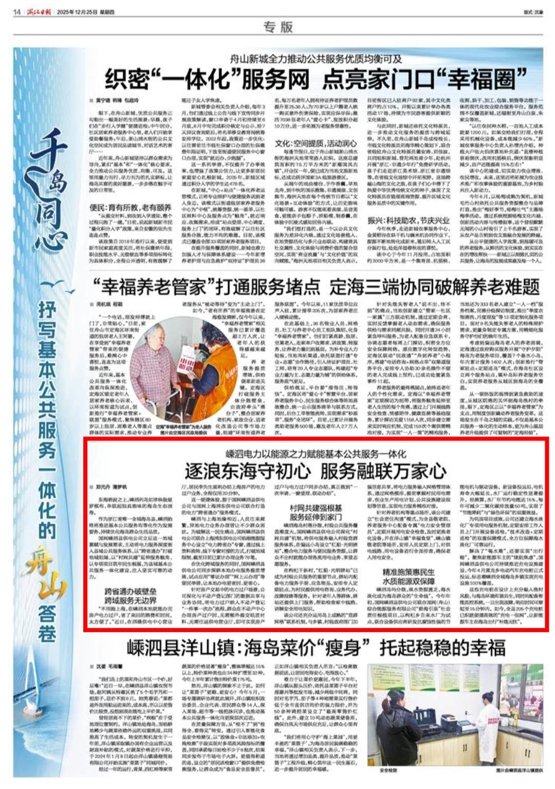 国网嵊泗县供电公司立足这一地域禀赋与发展需求,主动将电力服务深度嵌入县域公共服务体系,以“跨省通办”打破地域阻隔、以“村网共建”延伸服务触角、以专项项目筑牢民生根基,为县域基本公共服务一体化建设,注入坚实可靠的动力。