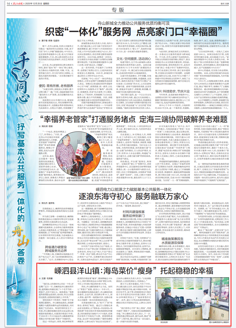 “我们将用心守护‘海上菜园’,用更丰盈的‘菜篮子’,为海岛居民装满稳稳的幸福。”洋山镇相关负责人表示,下一步,当地将通过增加品类、提升品质,推动“菜篮子”工程升级,精心筑牢这一民生基石,进一步提升居民的幸福感。