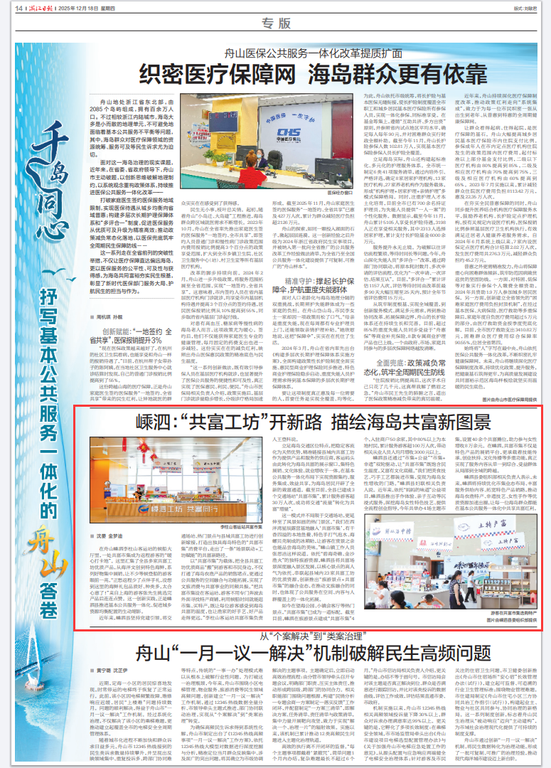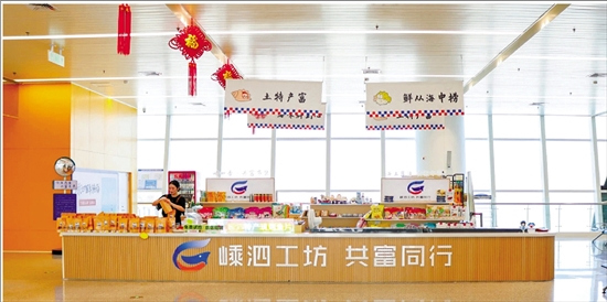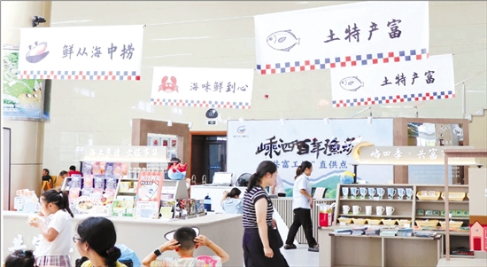 以“共富市集”为载体,把全县共富工坊优质商品“搬”到游客和市民身边,不仅打通了海岛农渔产品的销售堵点,更通过公共服务的空间融合与功能拓展,实现了文旅消费与共富事业的同频共振。“把共富市集设在客运站,游客不用专门奔波去外面寻找特产商铺,利用候船时间就能逛市集、买特产,既让每位游客感受到海岛共富的温度,也让渔家的好手艺、好产品走得更远。”李柱山客运站共富市集负责人王登科说。