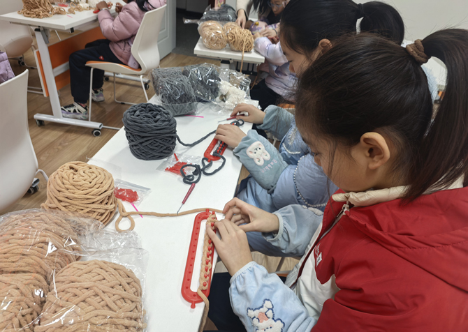 活动现场,社区工作人员手把手教孩子们编织技巧,从起针的基础手法到花样设计的巧思,都细致讲解。孩子们稚嫩的手指捏着毛线针认真穿梭,时而低头琢磨针法,时而互相交流心得。孩子发挥创意,给围巾织上可爱的玩偶装饰、实用的小口袋,就像活动中诞生的小熊小兔玩偶款围巾、带储物口袋的创意围巾,每一处设计都藏着童真与巧思,让普通的围巾变得独一无二。