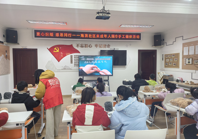 12月27日,嵊泗县菜园镇海滨社区组织辖区未成年人开展“童心织暖感恩同行”手工编织围巾活动,二十名小朋友化身“小小编织家”,用毛线与织针编织出柔软的围巾,也编织出一段充满爱与感恩的冬日美好时光。