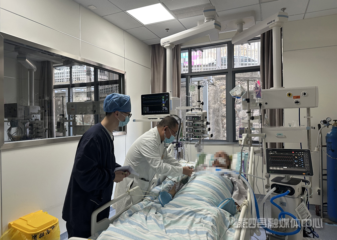 早上七点,杭前明忙碌的身影便出现在住院部。他穿梭于各个病房之间,耐心询问每一个病人的身体状况,并详细解答家属的疑惑,用通俗的语言向他们解释患者接下来的治疗方案,确保家属对治疗过程有充分的了解。患者们对他赞誉有加:“杭医生医术高超,对病人耐心仔细,尤其是对老人特别照顾。”查房结束,杭前明就立刻前往重症医学科(ICU),对危重患者进行细致的诊疗。他俯身仔细查看患者的瞳孔反应、皮肤色泽,耐心倾听肺部呼吸音,随后带着年轻医生实时分析患者的情况。根据监护仪器屏幕上的波形和参数,向身旁的年轻医生展开现场教学,条分缕析地阐述当前的治疗思路与后续方案。