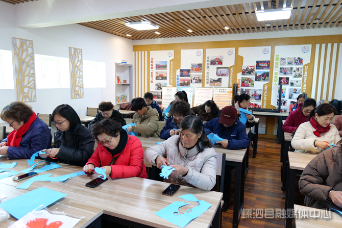 【嵊泗新闻网1月16日讯】(嵊泗县融媒体中心记者 郑予睿)1月10日,嵊泗海洋剪纸代表性传承人陈士定以特邀讲师的身份,走进了东海社区新时代文明实践站,带领20余名市民体验嵊泗特色的非遗海洋剪纸,迎接马年新年。活动中,陈老师先指导学员们剪出“海马”,寓意“马到成功”。之后,又带领大家一同制作了各式各样的海洋生物小立牌,寄托“年年有余”的美好心愿。课后,“海洋剪纸小分队”的学员们走上讲台,展示作品,现场洋溢着欢乐祥和的文化气息。