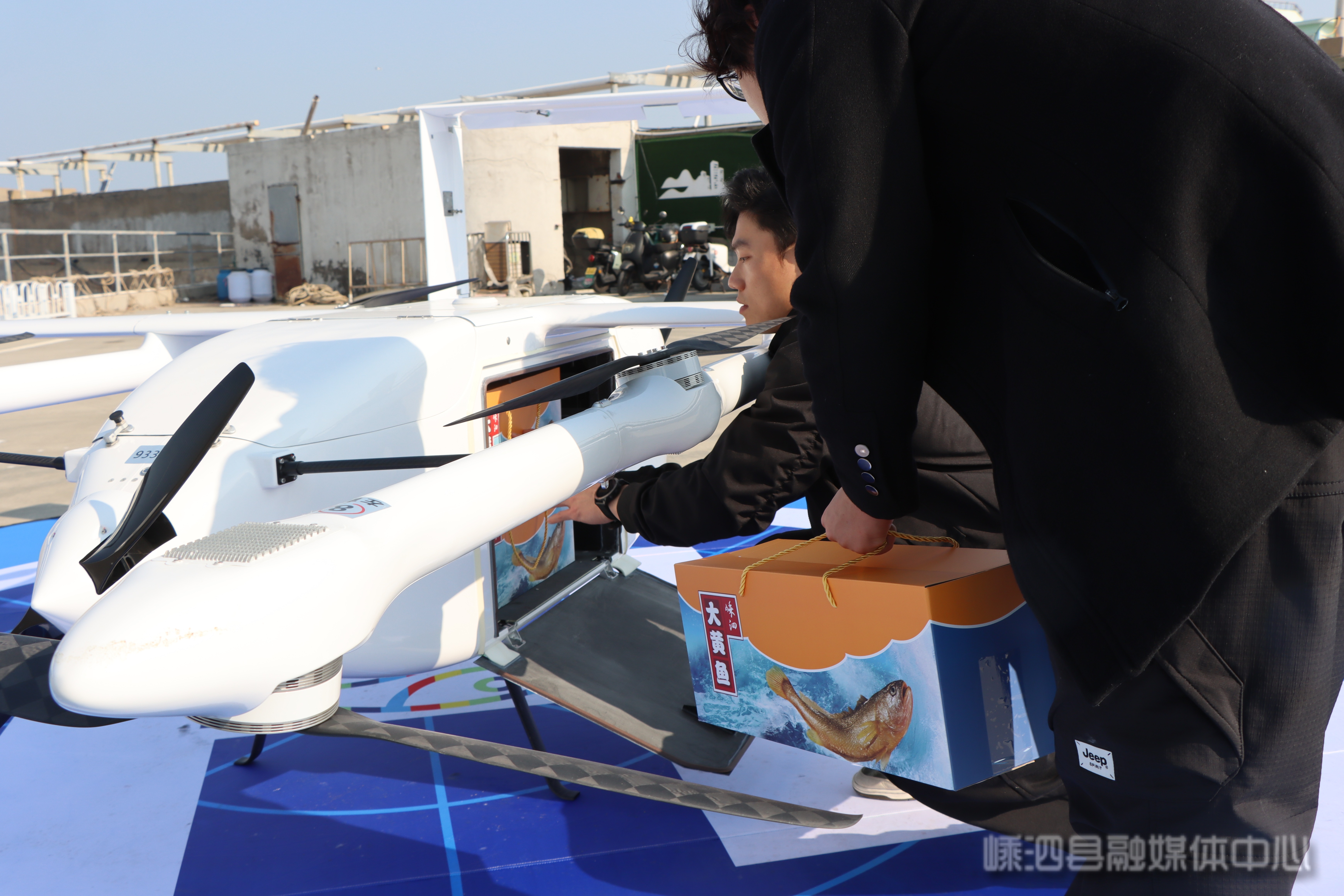 【嵊泗新闻网1月16日讯】(嵊泗县融媒体中心记者董梦媛杨淑媛)1月16日,嵊泗居民张女士在淘宝闪购平台“嵊泗百年渔场(沈家湾店)”浏览时,意外发现新增的无人机配送服务。“想让上海友人尝尝正宗的嵊泗大黄鱼”,这个简单的念头让她当即下单,一场跨越山海的生鲜极速配送就此拉开序幕。