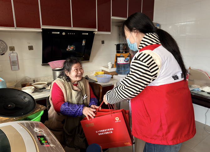 活动中,暖心小分队带着一份份“健康礼包”逐户上门。在吕奶奶家中,工作人员将装有保健品的礼包递给老人,并细致叮嘱:“吕奶奶,这保健品您平时用来调理身体正好,一天吃两次,要好好保重身体。”随后,工作人员又走访了家住海滨路上的徐奶奶家,与老人亲切交谈,询问其身体恢复情况与医疗开支,并送上保健品与新年祝福。“你们记挂着我们的难处,还特意准备了调理身体的保健品,这份心意太珍贵了!”徐奶奶接过礼包,言语间满是感激。