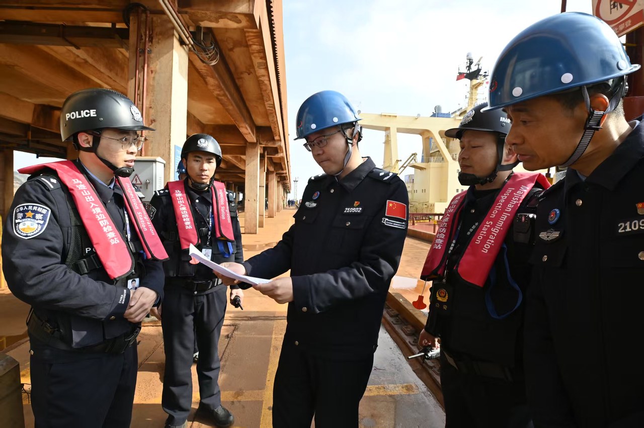 据悉,为确保首船通关万无一失,马迹山边检站第一时间启动专项勤务保障机制,针对该轮吨位大、通关时效要求高等特点,多次召开勤务部署会,演练梳理通关流程、科学调配警力,并提前与宝武资源所属嵊泗宝捷开展对接。工作推进过程中,马迹山边检专门组建党员先锋队,选派业务精通、外语娴熟的党员骨干充实执勤力量,提前围绕大型散货船查验重点、涉外沟通规范等开展专项培训演练,为高效通关夯实能力基础。同时,依托“互联网+边检”服务体系,民警提前与船方对接,远程完成船员身份信息预审核、船舶信息预检预录等前期工作,最大限度压缩线下办理时限,以“数据跑路”代替“船舶等办”。