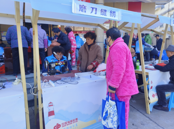 生活服务类摊位无疑是全场“人气王”。磨刀师傅手艺娴熟,唰唰几下就把锈迹斑斑的菜刀磨得锋利如新;缝纫志愿者帮大家修补衣物、更换拉链,电器维修师傅则忙着排查小家电故障,轻松解决大家的生活小麻烦,省时又省钱。干斜村的李阿婆体验完,笑着连连夸赞:“在家门口就能享受到贴心服务,太省事啦!”