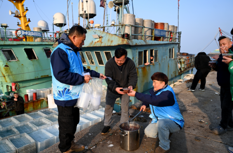 为了让大家喝上热乎乎的腊八粥,在活动当天的清晨,志愿者们就将红豆、花生、莲子等八种食材按比例投入大锅,以慢火悉心熬煮。经一个多小时的文火慢炖,食材的营养与香气充分交融,一锅锅热腾腾、香喷喷的腊八粥就这样新鲜出锅。活动中,志愿者们手捧着一碗碗香气扑鼻的腊八粥,挨个送到前来参加活动的居民手中,并上门为渔港织网的渔嫂和仍在船上工作的渔民送去了腊八粥,让大家在舌尖的香甜中品味到在传统节日里传递的真挚祝福。