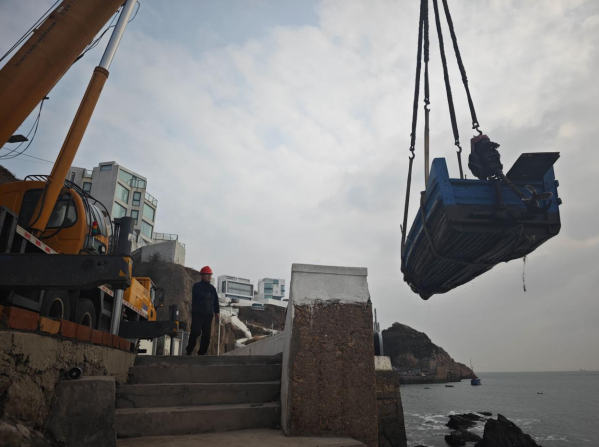 行动当天,执法人员对嵊山小渔港船舶集中停泊点、嵊山南面水域各码头等关键点位实施拉网式清查,逐一对船舶资质进行甄别核验,对排查发现的涉水“三无”船舶依法实施拖移吊岸处置。岸上工作人员同步维护现场秩序,全程把控吊运、转运各环节安全,确保整治行动规范有序推进。
