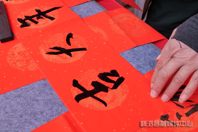 非遗展示摊位前同样人气爆棚,脸谱彩画、翰墨迎春等特色展位前挤满了驻足观赏的群众。不少小朋友亲手拿起画笔,绘制属于自己的脸谱和面具;翰墨迎春展位前,一幅幅笔力遒劲的春联新鲜出炉,传递着新春的美好祝福。