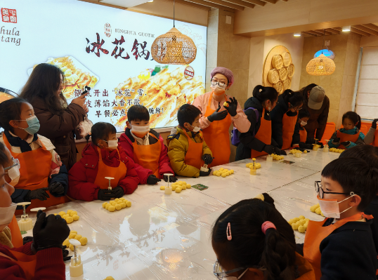 活动伊始,老师为孩子们讲解了绿豆糕的历史渊源与民俗寓意,介绍其“步步高升、甜甜蜜蜜”的美好期许。随后,老师详细演示了绿豆糕从食材处理到模具按压的完整制作步骤,孩子们听得聚精会神、满心期待。讲解结束后,孩子们在家长陪伴下动手实践,按照指导搓面团、压平整、放模具、脱模,一个个刻有福字、生肖马等纹样的绿豆糕相继成型,每一款都饱含孩子们的心意与专注。制作现场暖意融融、笑语盈盈,孩子们相互帮助、积极请教,稚嫩的小手动作认真,成功的喜悦溢于言表。淡淡的绿豆清香弥漫全场,烟火气与文化味交织,格外动人。
