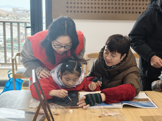 手作之乐未尽,书香之韵已至。紧接着,“品阅黄龙·静享时光”阅读分享会温情启幕。活动以《海望嵊泗黄龙岛》摄影集为核心分享载体,画册以镜头定格海岛风光,用影像记录生产生活、镌刻历史变迁,生动展现黄龙岛的岁月更迭与发展脉络。家长与孩子围坐共读,在一幅幅珍贵老照片中穿梭时光,家长们结合亲身经历,向孩子讲述家乡的旧貌新颜,细数海岛交通、民居、生产生活的巨大变化;孩子们满怀好奇,频频提问探寻海岛过往,在一问一答间,乡土记忆悄然扎根,家乡情怀深深厚植。村民陈大姐由衷感慨:“作为土生土长的黄龙人,看着这些照片倍感动容,海岛乡村的华丽蝶变、百姓生活的蒸蒸日上,都是看得见、摸得着的共富幸福,我为家乡的发展倍感自豪!”这场阅读分享,既是一场回望家乡的视觉之旅,更是一堂激发乡情共鸣、凝聚发展共识的文化课堂。