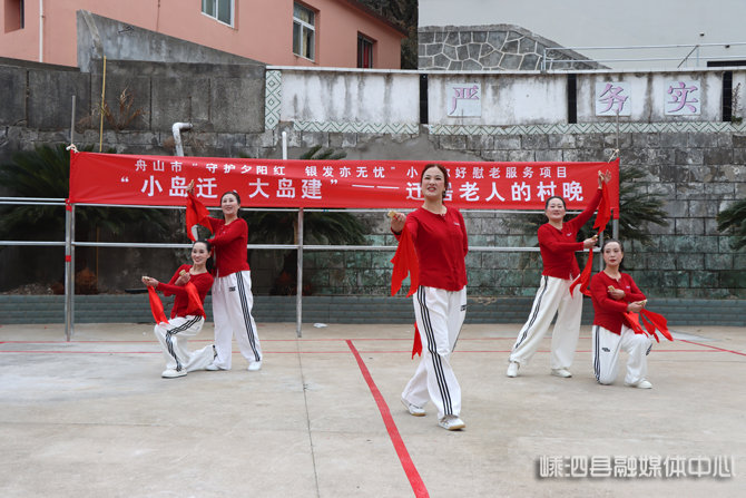 【嵊泗新闻网2月11日讯】(嵊泗县融媒体中心记者 董梦媛)2月9日下午,舟山市“守护夕阳红银发亦无忧”小岛你好慰老服务项目温情启幕,一场专为“小岛迁大岛建”迁居老人量身打造的村晚,在金平村安置房热闹开演。喜庆的鼓点划破冬日的静谧,欢快的舞姿点燃新春的期盼,这场充满烟火气与暖意的文艺表演,不仅为老人们送上了最真挚的新春祝福,更让这群离开故土、乔迁新居的老人,提前感受到了浓浓的年味与家的归属感。