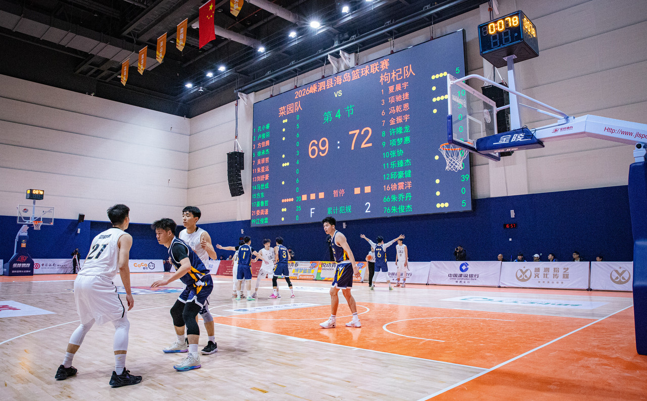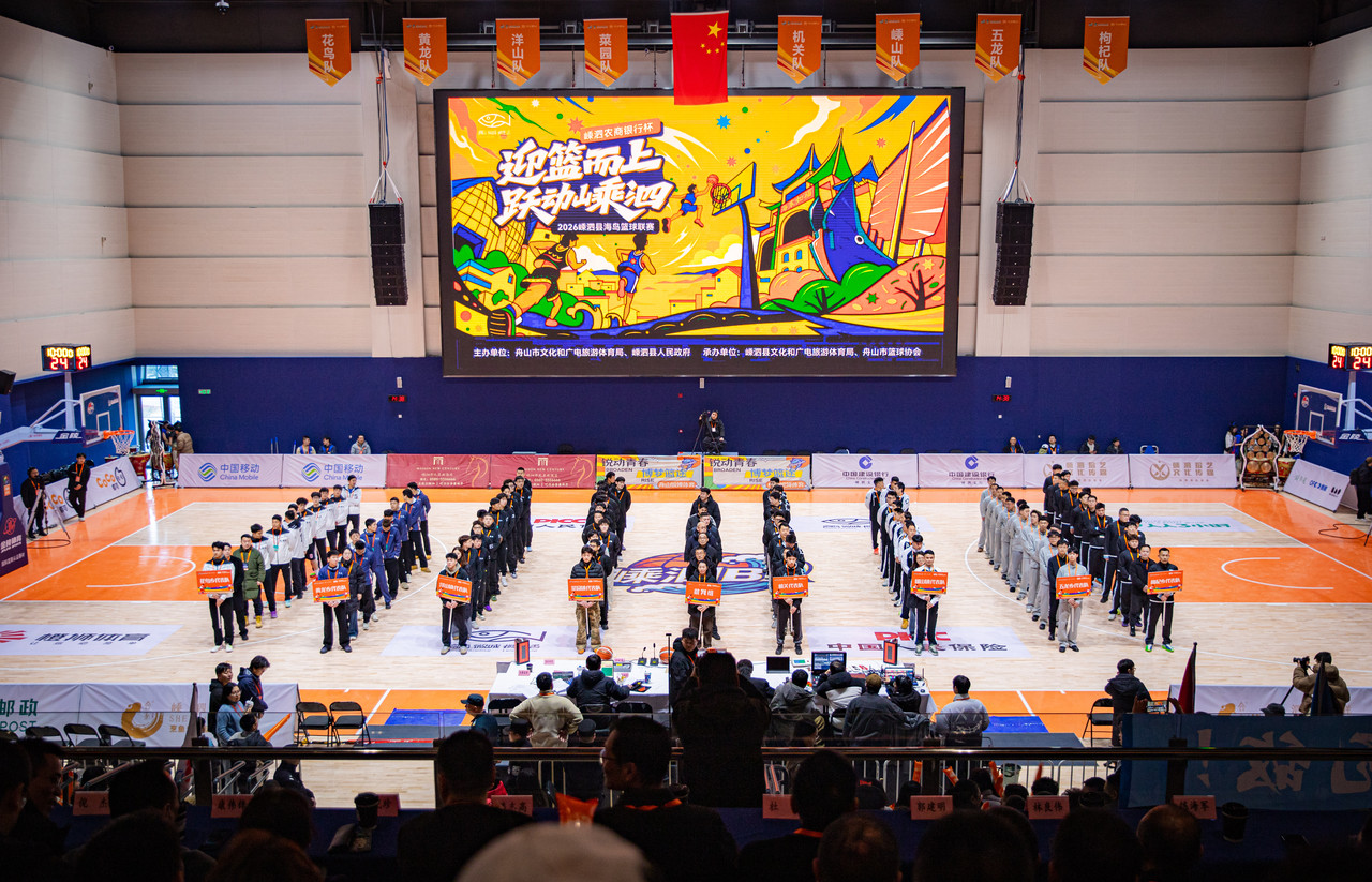1月24日,舟山全民健身中心嵊泗分中心(嵊泗体育馆)内人声鼎沸、热潮涌动。随着一声开赛哨响,嵊泗县海岛篮球联赛(“嵊泗BA”)正式拉开战幕。来自全县各乡镇、机关单位的八支队伍齐聚于此,将以横跨1月下旬至2月12日、共计十六场的激烈角逐,点燃海岛的篮球热情,让竞技激情与海岛风情在赛场碰撞交融。