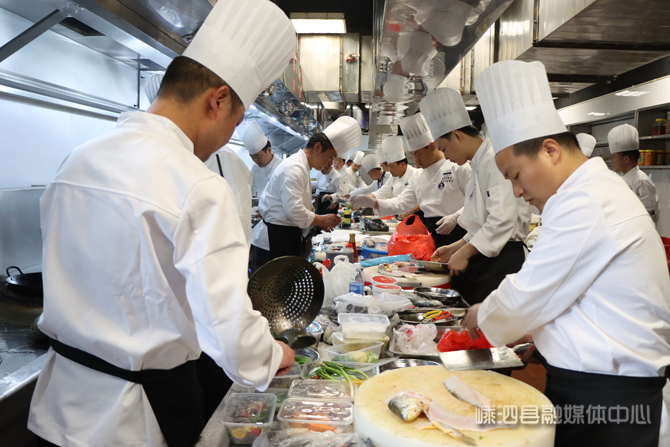 嵊泗坐拥东海黄金渔场,是渔家美食文化的鲜活载体,而此次大赛正是立足本土食材优势,搭建起厨艺交流与品牌推广的重要平台。比赛现场,各餐饮店派出的两名选手分工明确、配合默契,掌勺者精准把控火候,备菜者细致打理食材,厨房里烟火气氤氲,暖意融融。切配、腌制、翻炒、蒸煮,一系列动作娴熟流畅,鳗鱼、带鱼、鲳鱼等新鲜海产,在厨师们的匠心巧手下,逐步蜕变为兼具颜值与风味的佳肴。