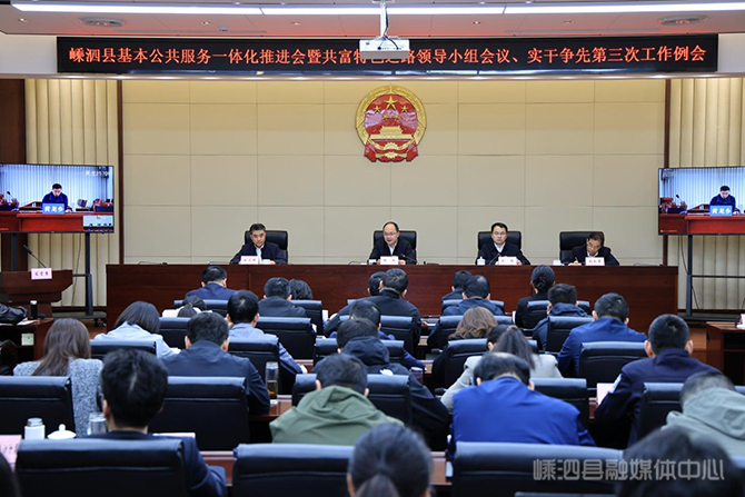 【嵊泗新闻网4月21日讯】(嵊泗县融媒体中心记者鲍恺乐)4月21日,嵊泗县基本公共服务一体化推进会暨共富特色之路领导小组会议、实干争先第三次工作例会召开,套开共富特色之路第四十三次例会、缩小“三大差距”第十五次工作例会、基本公共服务一体化第二十六次工作例会。总结前阶段海岛共富和实干争先活动等相关工作进展情况,研究部署下阶段重点工作任务。县委书记杨松出席会议并讲话,县委副书记、县长俞能主持会议,刘立峰、刘永革等县领导出席。