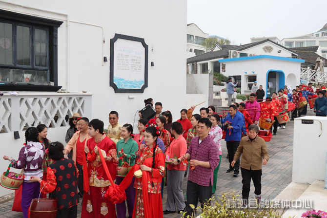 “吉时——已到!”随着司仪一声清亮的宣告,花鸟岛双子座口袋公园内锣鼓、镲乐齐鸣。近日,花鸟岛上精彩复刻省级精品演艺《东海谣》中的经典婚俗桥段,原汁原味的渔歌号子、热闹古朴的渔家接亲仪式,让游客与岛民沉浸式感受独属于东海渔村的婚嫁浪漫。接亲巡游、街巷讨喜、古礼拜堂等特色环节,打破了传统观光旅游的单一模式,让花鸟“爱情岛”的文化内核看得见、摸得着、可参与、可体验。县文化和广电旅游体育局副局长叶玲表示:“我们希望借助‘沉浸式演绎+’的模式,将海岛花鸟的婚登旅拍、登记服务以及各类体验项目进行串联式开发,打包成一个整体的产品推向广大游客,提升海岛文旅的吸引力。”
