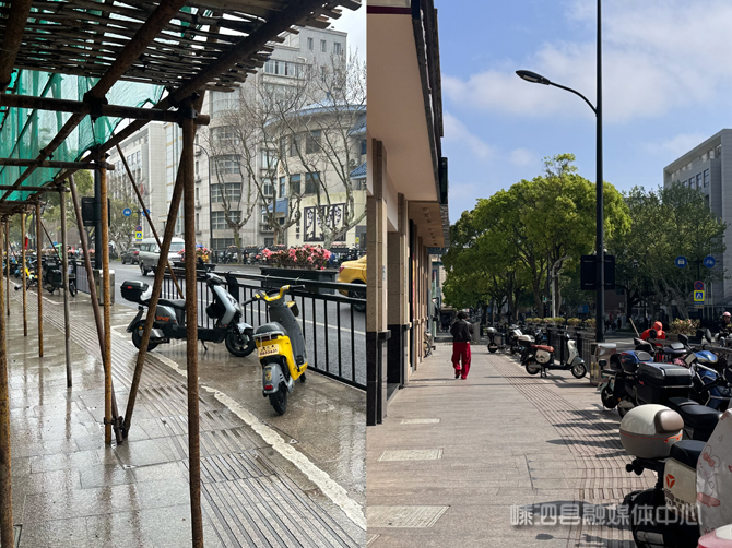 记者在海韵公寓沿街现场看到,曾经环绕沿街楼房、占据近一半道路宽度的脚手架和防护网已彻底清理完毕,原本被遮挡的外墙修葺一新。与之前行人需要侧身、撑伞时甚至要跻身非机动车道的窘况相比,如今这条人行道已经恢复了往日的宽敞和通畅。谈及脚手架拆除后的变化,周边商户的喜悦溢于言表。“这条路本来人车混行,再搭上脚手架,三面受阻,我这门槛都没人踏进来,店里根本没什么生意。”一位商户坦言,此前脚手架占道对经营造成了不小影响,“现在总算是修好了,终于有了结果。”另一位商户也连连称赞:“你们记者来曝光后,施工进度明显加快了。拆掉不仅方便了我们,连行人都方便多了。之前路过不留神,很容易碰到头,现在拆掉好多了。”