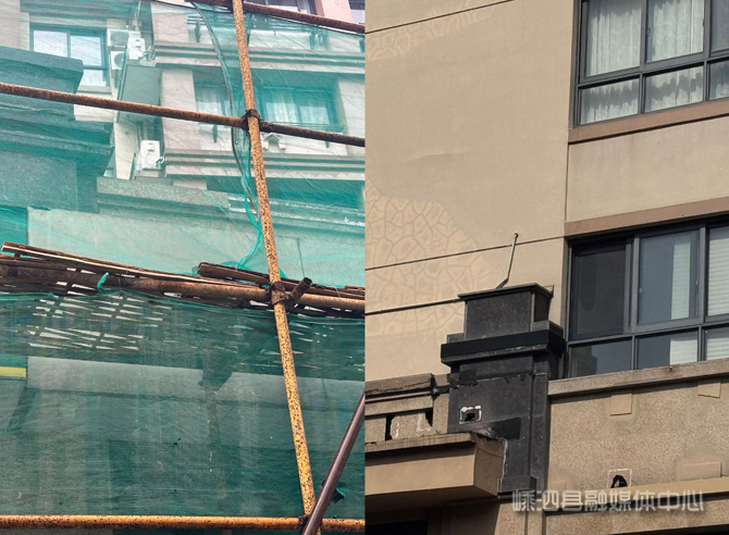 海韵公寓物业服务中心工作人员表示:“施工前期,施工方对大理石内部墙体结构掌握不够全面。脚手架搭建完成后,维修人员开展现场检查时发现,原有结构胶已出现脱胶等安全隐患,导致维修方案需临时优化调整。后续受天气因素影响,施工工作被迫暂停,待天气条件好转后,我们立即组织施工人员抢抓工期、加快推进,确保维修工作顺利完成。脚手架已于21号下午全部拆除,截至目前,未再收到居民相关反馈。”
