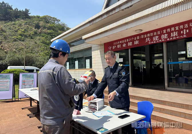 随后,工作人员前往嵊泗马迹山港区,向一线企业员工开展讲解宣传。针对港口作业环境中易产生的粉尘、噪声等职业危害,志愿者们向工人们免费发放了防尘口罩、防噪耳塞等防护用品,并通过面对面讲解倡导工友养成健康生活习惯,提升其自我防护意识和能力。