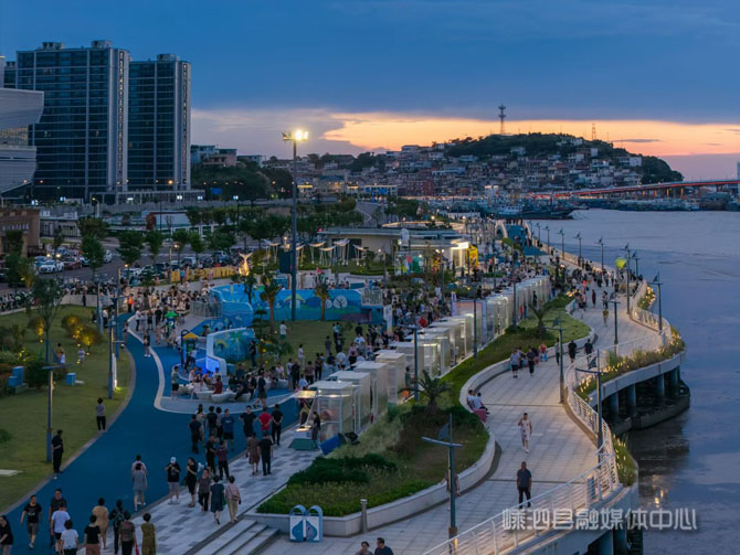 精品民宿的文化创新、国际品牌的落地赋能、夜间业态的提质升级、数字电商的云端破局,共同勾勒出菜园镇旅游业态迭代的清晰脉络。近年来,菜园镇持续丰富文旅活动载体,成功举办骑行、帆船、路跑三大主题赛事,常态化运营“北港”“滩头”主题集市,“村口音乐会”等活动IP已形成品牌效应。立足现有产业基础,今年,菜园镇将围绕“一港两岸”和两大核心景区及其周边区域,精准发力推进全领域业态布局提升,持续完善文旅产业生态。“我们将继续推进小岛阳台休闲娱乐二期工程,另外打算在金平打造赶海滑泥公园,此外,要完成中心渔港防浪堤的灯光亮化。”菜园镇经济贸易与文化旅游发展办公室工作人员曾斯琪告诉记者:“此外,我们还对两个沙滩核心景区进行经营体制改革,同时全面提升基湖沙滩、黄家台遗址公园周边的环境风貌和品质,在金沙路增加夜间互动式的渔俗文艺表演。小关岙方向,我们将进一步优化彩虹桥落日观景平台的业态配套。”