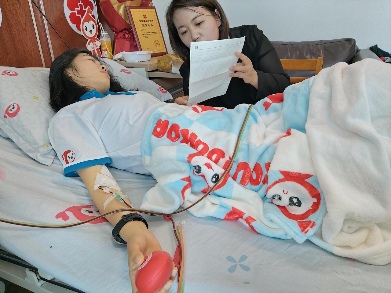 她身上的采集管一扎就是五个多小时。但自始至终,她没有皱一下眉。