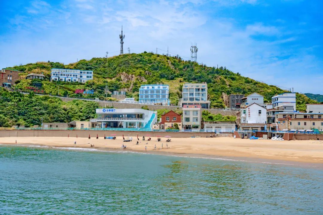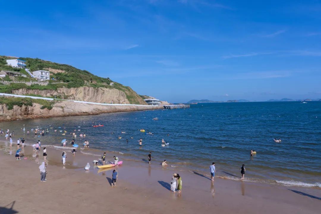 南湾沙滩位于花鸟村。盛夏,瓦蓝天空下的一抹蔚蓝,甚是璀璨。游客在南湾沙滩不仅能看海踏浪,还能体验皮划艇、帆船等海上项目。