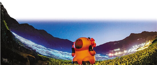 晚上7时,灯光秀在2000多亩古梯田上展开,光影与夜空交相辉映。“哇!”人群中爆发出惊叹,游客们纷纷举起手机,记录这梦幻瞬间。