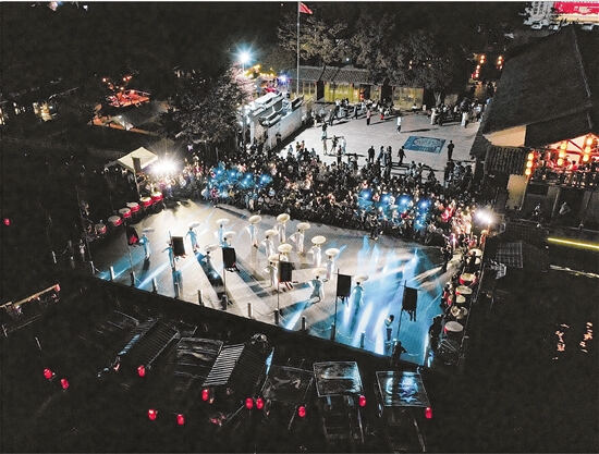村民告诉记者,这里曾经是村里闲置的“虞舜会堂”,去年8月完成改造后大变样,能吃能玩能逛。每周六晚,来自绍兴各地的草根艺人登上村内水乡大舞台一展才艺,舞剑、古筝表演等节目轮番上演。这个夜间新地标,今年已吸引超过5万游客慕名而来。