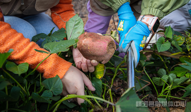 “哇!我挖到了!”红薯地里,惊呼声此起彼伏。小“矿工”们分工明确,有的麻利地拨开藤蔓,有的直接上手在松软的泥土里“寻宝”。当深红色的薯皮在土层下若隐若现时,孩子们不约而同地发出惊喜的欢呼:“太期待红薯烤熟后的味道了!”