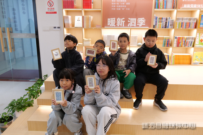 活动中,老师讲解宋锦珍珠画这一我国非遗艺术的发展历史、织造工艺等知识。同学们围坐倾听,全神贯注。在实操环节,同学们在老师的耐心指导下,用剪刀裁剪画布,将“珍珠”按图案镶嵌定位,最后置入相框封装。活动尾声,“小艺术家”们纷纷面向镜头展示了自己的画作并合影留念。