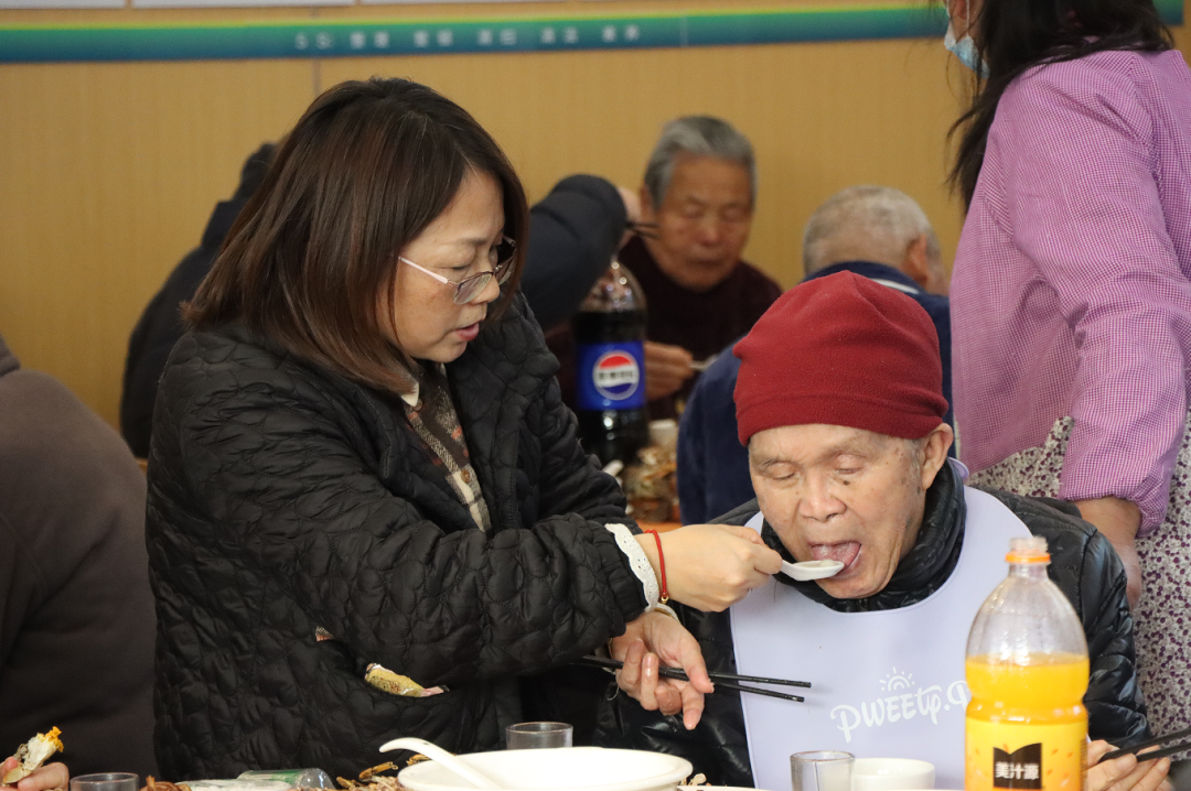 宴席间,温情时刻不断上演。护工们全程贴心相伴,耐心地为老人剔骨盛汤,不时闲谈家常、送上祝福。亲切的交谈声、爽朗的笑声交织在一起,每一处细节都浸润着新春的喜悦,每一个角落都充盈着家的温情。