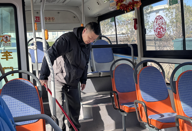 每天清晨到岗后,高潮波第一件事就是绕车检查。轮胎气压、刹车性能、油量水位……每一项都关系着行车安全,他从不马虎。为了让乘客有更舒心的乘车体验,他还会擦拭车厢扶手、清理座位,这些细节上的用心,已成为他多年不变的习惯。