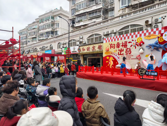 在嵊泗县中心农贸市场北门,“文艺赋美——2026向幸福出发元宵系列活动”接连上演4场精彩演出,把文艺舞台直接搬到百姓身边。小舞星工作室、89文创工作室、顶楼日记乐队等本土文艺团队轮番登台,带来形式多样、内容丰富的文艺节目。歌曲《是妈妈是女儿》《如愿》、舞蹈《画春堂》《人面桃花》、爵士舞串烧《ZOO》等表演点燃现场氛围;顶楼日记乐队演绎的《不再犹豫》《成都》《蓝莲花》等经典曲目,更是引发全场观众齐声合唱。