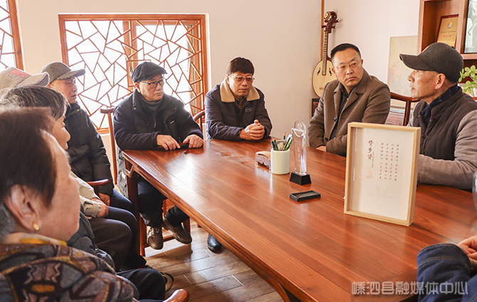渔歌互动展示结束后,一场围绕渔歌传承的座谈交流在嵊泗渔歌号子馆(舒信虎非遗工作室)温情展开。舒信虎、嵊泗渔歌创作团队、嵊泗益乐社工志愿者与边礁村老年学堂学员代表,一同追忆渔歌背后的海洋记忆与岁月变迁,深入探讨渔歌非遗的传承路径与创新方向。