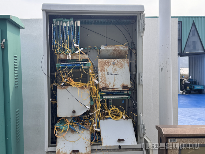 记者在高场湾片区走访发现,不少光交箱存在门板脱落、箱体老化问题。历经多年风吹雨淋,箱内隔板、盖板锈蚀变形,光纤线路杂乱裸露,不仅存在安全隐患,还影响网络信号稳定。