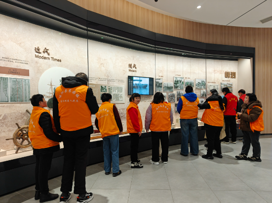 次日,社工们与残疾人之家工作人员一同陪护“阳光宝宝”开启户外实践之旅。大家乘坐公交车前往嵊泗县博物馆,来到博物馆后,映入眼帘的是满墙的渔船模型与“宝宝”们的哇声一片,大家认真参观馆内的历史文物、民俗展品与海洋文化相关陈列,驻足观察展品细节,有“宝宝”拉着工作人员指着陶土筷笼兴奋地说:“这个我们家以前也有”,大家在沉浸式体验中感受本土文化底蕴,拓宽认知视野。参观博物馆后,大家步行前往基湖油菜花基地,穿过油菜花田,徜徉在盛放的油菜花海中,沉浸式感受春日自然风光与田园美景,“宝宝”们在乘车过程中学习了规范乘车技能,在团队出行中培养相互协作能力与团队凝聚力,在轻松愉悦的氛围中舒缓身心、释放压力。