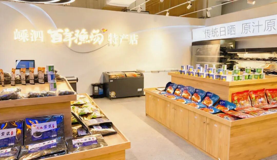 值得注意的是,此次项目中还有一个充满温度的细节:店内主打产品如传统工艺晾晒的黄鱼鲞、虾米、炸鱼骨等特色海鲜干货,主要来自嵊泗海语贸易有限公司。作为嵊山镇的一家强村公司,该公司与“百年渔场”建立了定向采购机制,优先收购村集体中弱势群体加工的渔获物。这一机制让“小海鲜”串起了共富链,把海洋的馈赠实实在在转化为渔民的增收红利。
