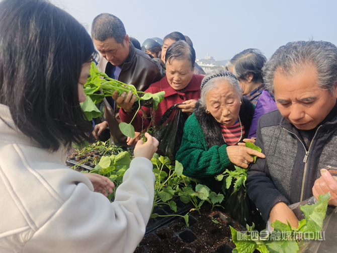 活动现场,一筐筐摆放整齐的秧苗绿意盎然、长势喜人。此次发放的种苗品种丰富、搭配合理,涵盖番茄、蒲瓜、黄瓜、南瓜、辣椒、甜椒、茄子、玉米等8个常见品种,能够较好满足农户庭院经济和田间地头多样化种植需求。工作人员一边发放种苗,一边向村民讲解不同品种的种植要点、水肥管理及病虫害防治技术,帮助大家科学栽种、提高成活率。“这些种苗送得真及时,品种也齐全,今年我家的菜园子不用愁了。”领到种苗的李大爷高兴地说。